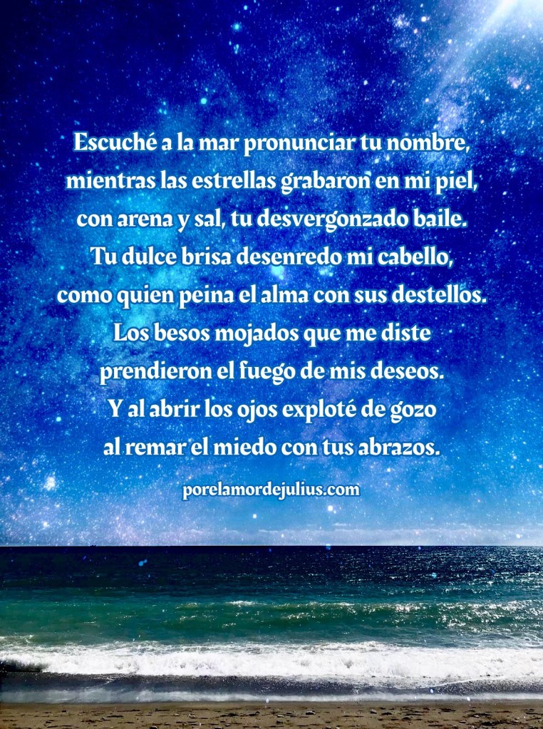 Escuché a la mar pronunciar tu nombre, mientras las estrellas grabaron en mi piel, con arena y sal, tu desvergonzado baile.